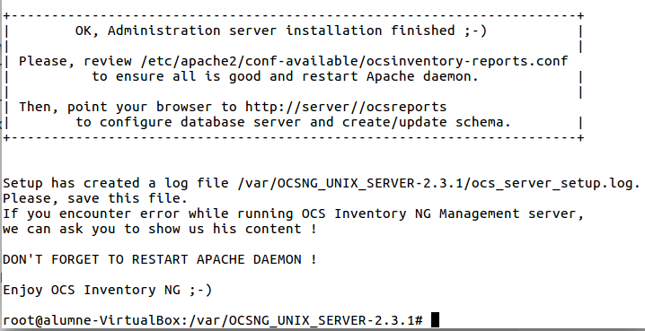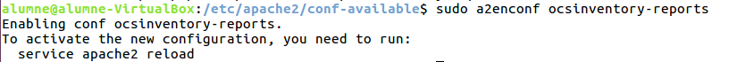 Com es veu a la imatge cal situar-se sota la carpeta corresponen d’apache per tal de comprovar que se’ns ha creat el fitxer ocsinventory-reports. A continuació, activar el lloc web amb a2enconf i el nom del fitxer que conté la configuració, sempre amb els drets d’administració.