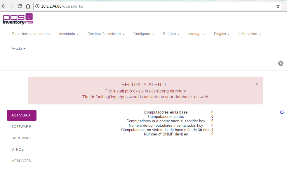 Si no s’ha donat cap problema hauríem de ser capacos d’accedir des de la nostra xarxa al servidor OCS posant. http:// seguit de la IP de la màquina servidora i /ocsreports a continuació.