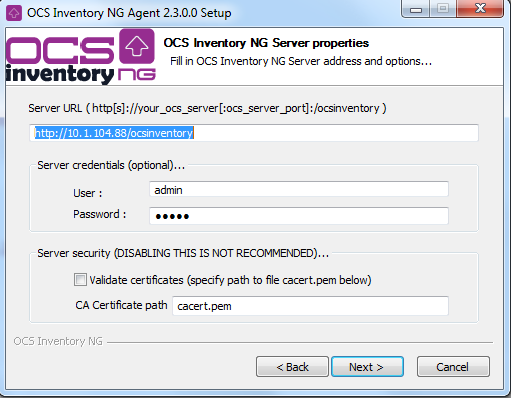 En ella només cal indicar l’adreça web del servidor per tal de que pugui comunicar-s’hi i enviar-hi reports periòdics d’informació sobre l’equip.